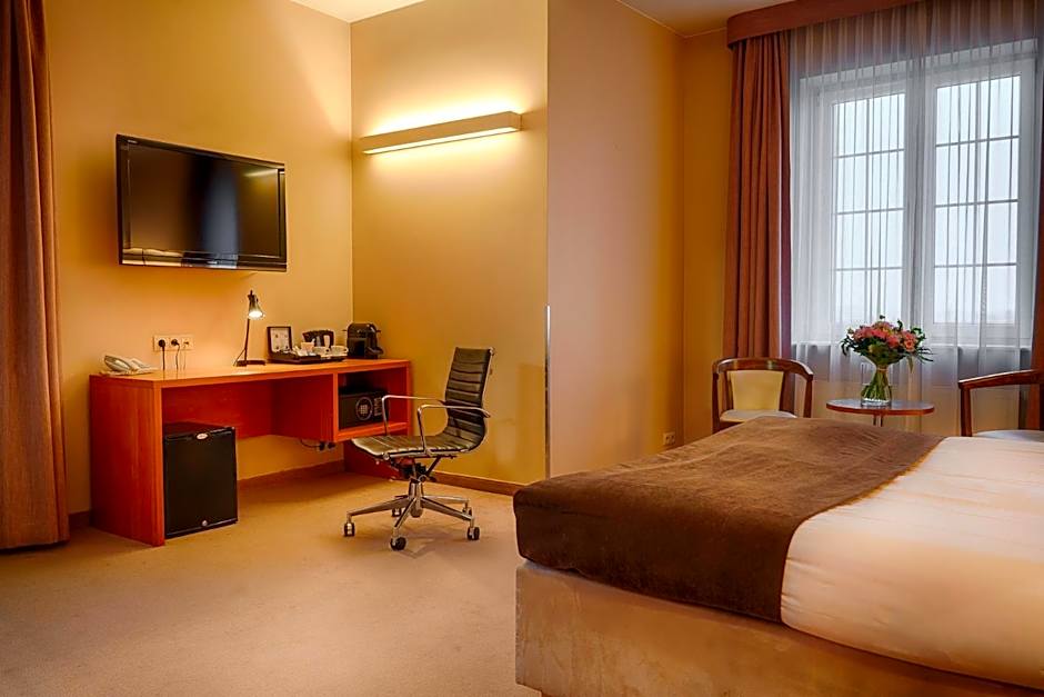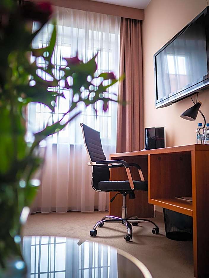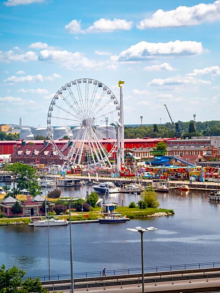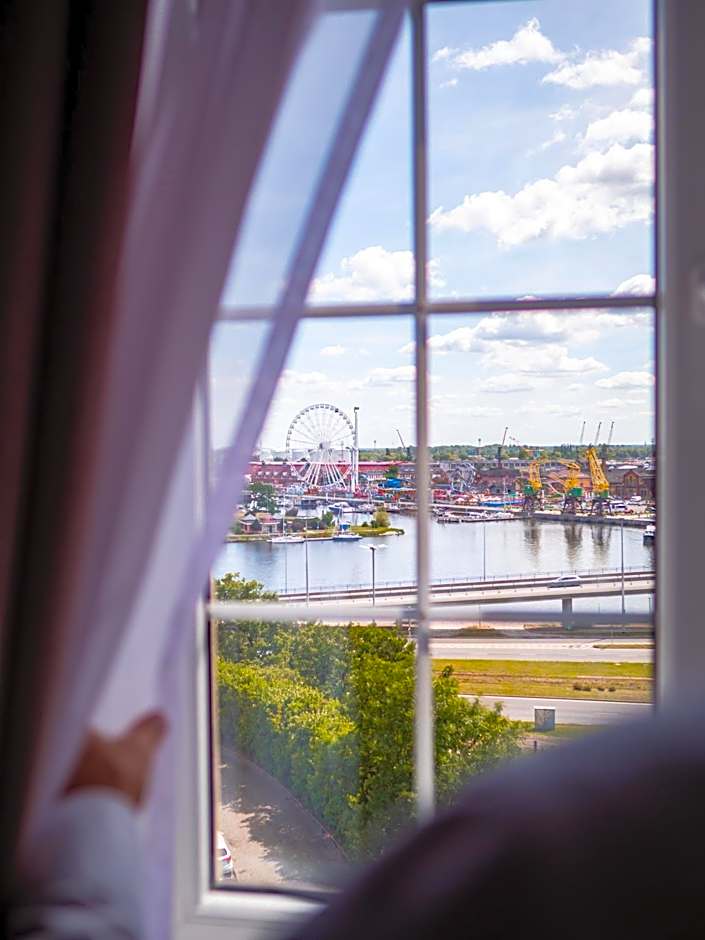 Select rooms at Focus Hotel Szczecin feature scenic views of the Odra River and the port, while others overlook the architecturally striking Waly Chrobrego terraces. Each guest room is furnished with a spacious bed, flat-screen LCD TV, work desk, tea and coffee facilities, and complimentary mineral water. Full blackout curtains are also available for added comfort.