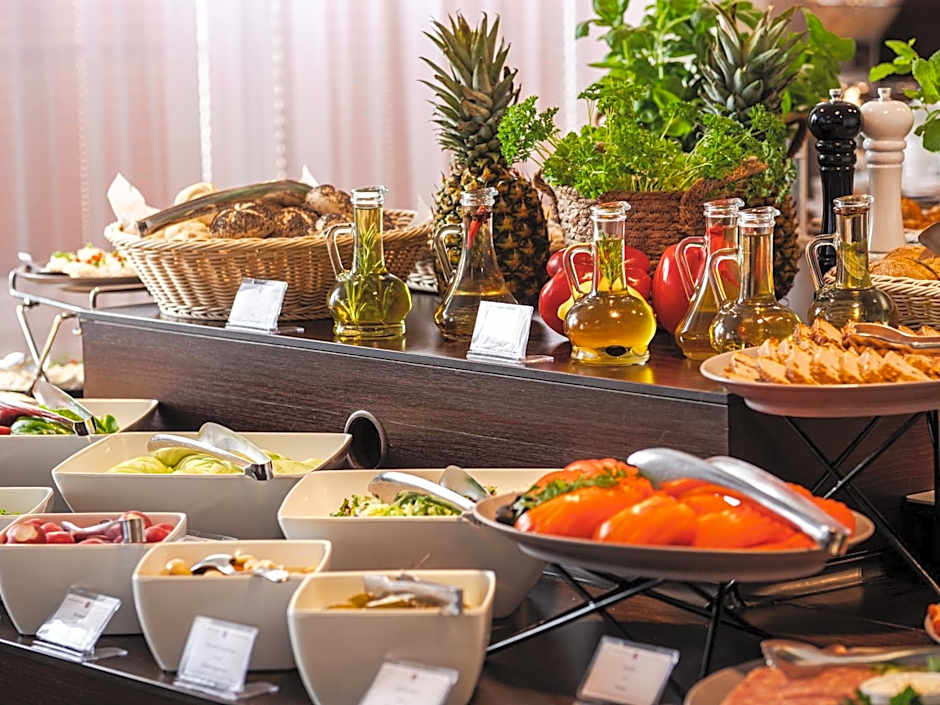 The on-site restaurant serves a variety of international cuisine, while the hotel bar provides a relaxed setting for drinks in the evening. A daily breakfast buffet offers a wide selection of fresh items to start the day.